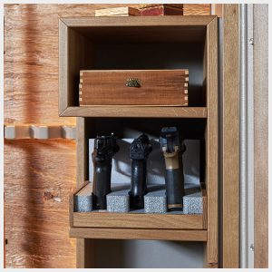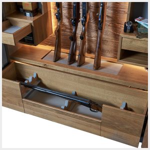 Our carpenters specialise in creating the perfect piece of wood furniture to house your gun safely in your living area. With a bullet-proof glass rifle cabinet, hiding away your most impressive weapons or collections is a thing of the past. Your weapons will be showcased beautifully whilst secured safely against unauthorised access at all times.