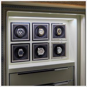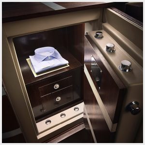 Of course, it is entirely up to you to decide what you keep in your custom-built safe, but when making your plans it is advisable to consider which personal âtreasuresâ you would like to store securely in your safe and how much space they may require. The design and construction of a safe are often a result of the special requirements the interior must fulfil, so it cannot hurt to plan ahead. Does there have to be room for watch winders, or will drawers suffice? Or if you want to use the safe mainly for storing gems and jewellery, how many small, flat drawers will be necessary and how should they be equipped? Do you need pull-out compartments for valuable coins and medals? Or perhaps pigeon-holes for stamp albums? If you would like to keep certificates and other valuable documents in your safe, it makes sense to have a compartment high enough for an A4-size folder. We will be glad to discuss the possibilities with you â after all, we want your safe to be perfectly equipped and tailored to suit your exact requirements!